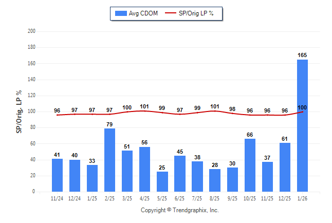 January 2026 Average Continuous Days on Market trend was Rising and Sold/Original List Price Ratio Remains Steady**