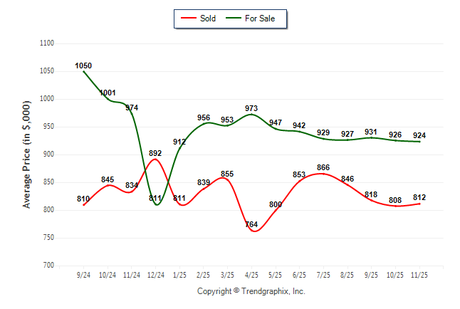 November 2025 Average For Sale Price was Depreciating and Average Sold Price was Neutral**