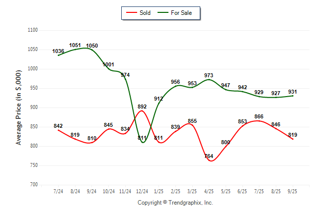 September 2025 Average For Sale Price was Neutral and Average Sold Price was Neutral**