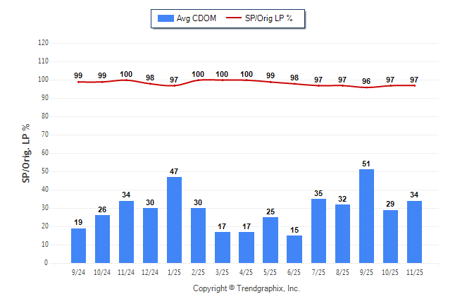 November 2025 Average Continuous Days on Market trend Remains Steady and Sold/Original List Price Ratio Remains Steady**