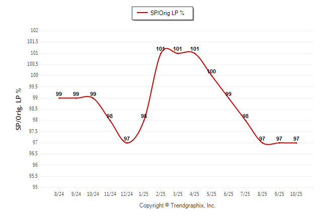 October 2025 Sold/Original List Price Ratio was Falling**