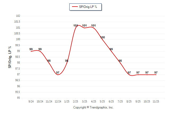 November 2025 Sold/Original List Price Ratio was Falling**