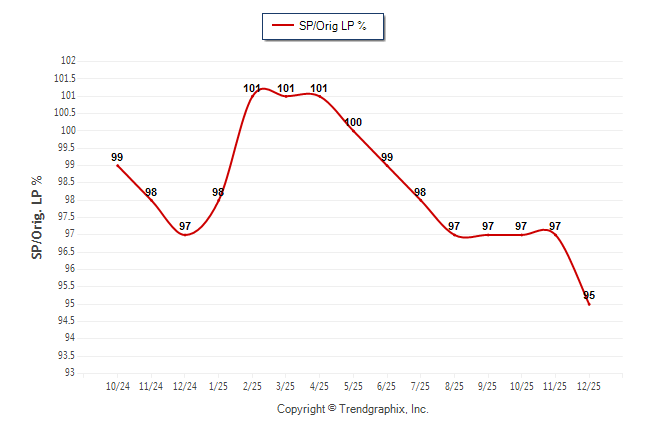 December 2025 Sold/Original List Price Ratio was Falling**