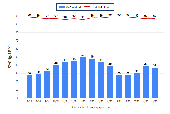 September 2025 Average Continuous Days on Market trend Remains Steady and Sold/Original List Price Ratio was Falling**