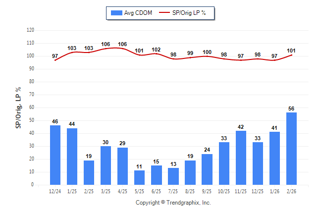 February 2026 Average Continuous Days on Market trend was Rising and Sold/Original List Price Ratio Remains Steady**