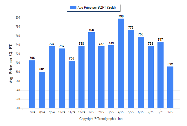 September 2025 Average Sold Price per Square Footage was Depreciating**