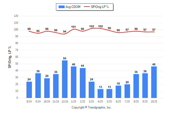 October 2025 Average Continuous Days on Market trend was Rising and Sold/Original List Price Ratio Remains Steady**