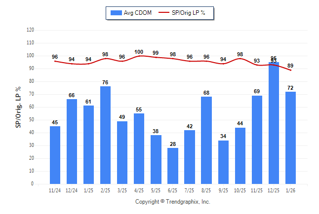 January 2026 Average Continuous Days on Market trend Remains Steady and Sold/Original List Price Ratio was Falling**