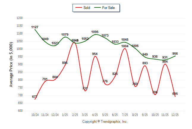 December 2025 Average For Sale Price was Neutral and Average Sold Price was Depreciating**