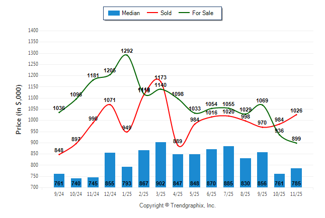 November 2025 Median Price was Neutral, Avg. For Sale Price was Depreciating, and Avg. Sold Price was Neutral**