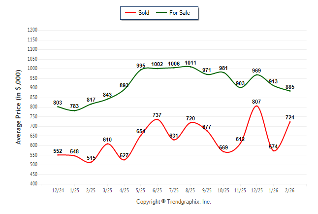 February 2026 Average For Sale Price was Depreciating and Average Sold Price was Neutral**