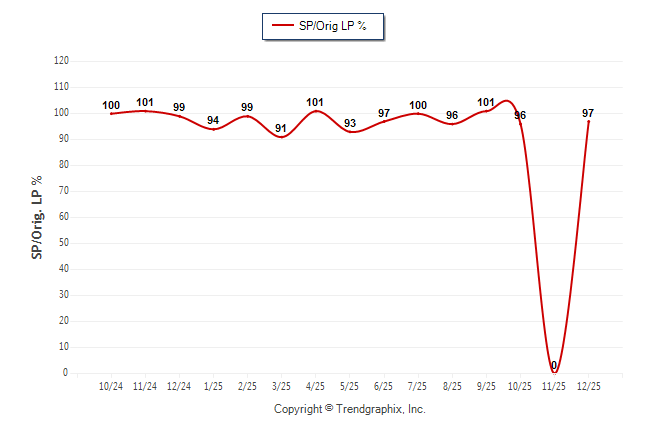 December 2025 Sold/Original List Price Ratio Remains Steady**