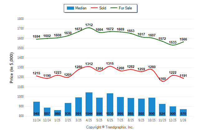 January 2026 Median Price was Depreciating, Avg. For Sale Price was Neutral, and Avg. Sold Price was Neutral**