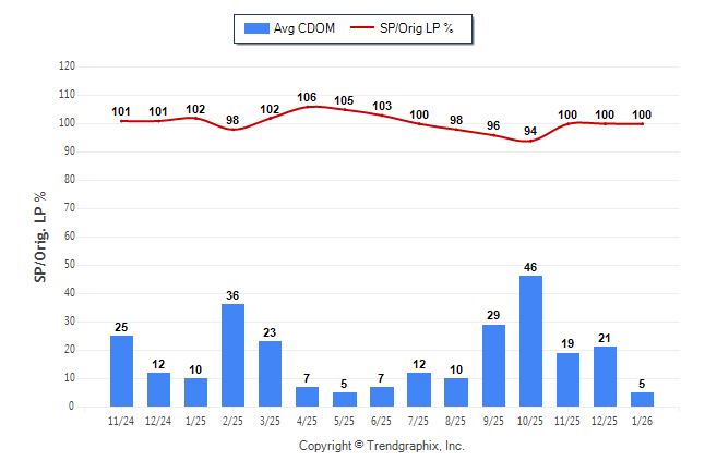 January 2026 Average Continuous Days on Market trend was Falling and Sold/Original List Price Ratio was Rising**