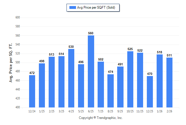 February 2026 Average Sold Price per Square Footage was Neutral**