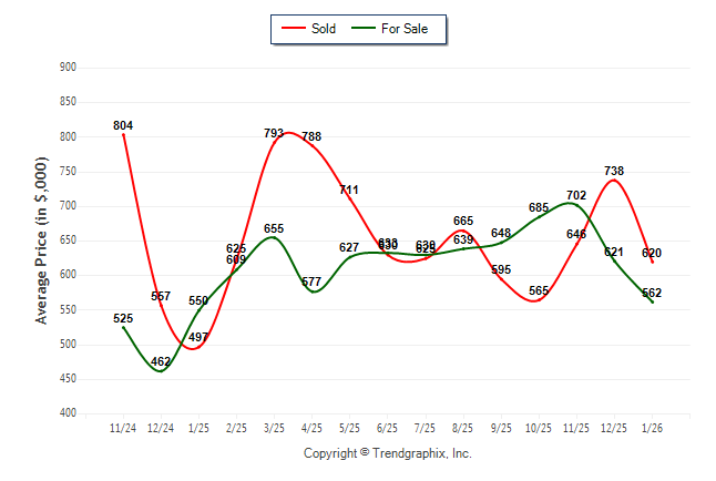 January 2026 Average For Sale Price was Depreciating and Average Sold Price was Neutral**