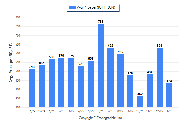 January 2026 Average Sold Price per Square Footage was Neutral**
