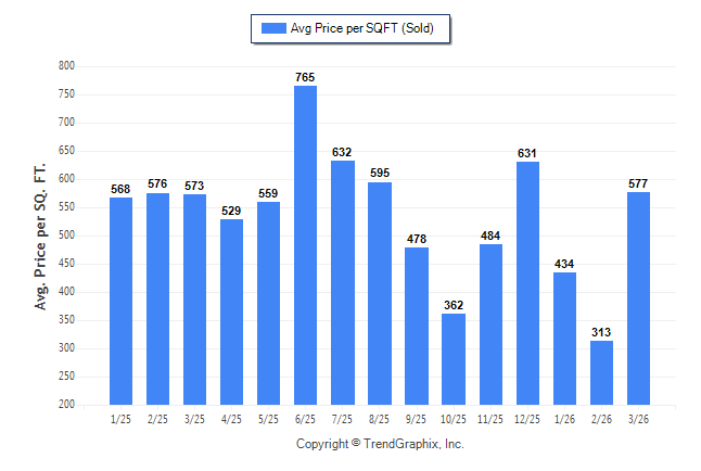 March 2026 Average Sold Price per Square Footage was Appreciating**