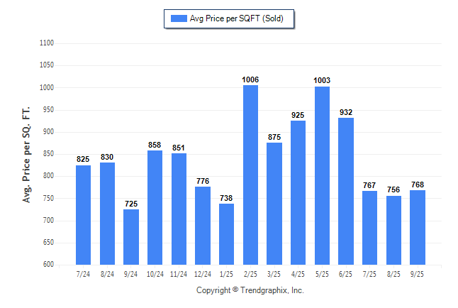 September 2025 Average Sold Price per Square Footage was Neutral**