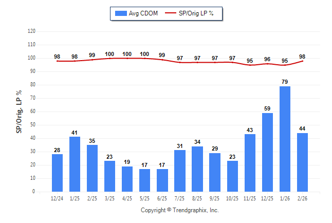 February 2026 Average Continuous Days on Market trend Remains Steady and Sold/Original List Price Ratio was Rising**