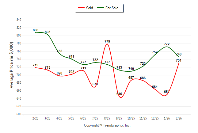 February 2026 Average For Sale Price was Neutral and Average Sold Price was Appreciating**