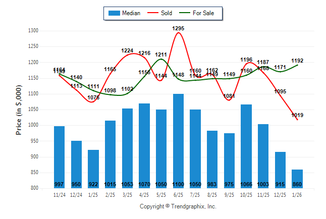 January 2026 Median Price was Depreciating, Avg. For Sale Price was Appreciating, and Avg. Sold Price was Depreciating**