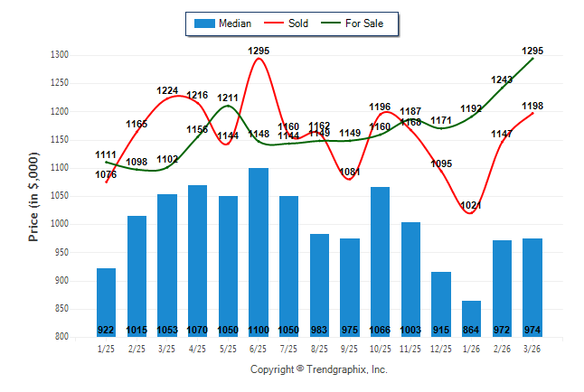 March 2026 Median Price was Neutral, Avg. For Sale Price was Appreciating, and Avg. Sold Price was Neutral**