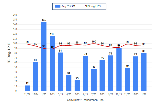 January 2026 Average Continuous Days on Market trend Remains Steady and Sold/Original List Price Ratio Remains Steady**