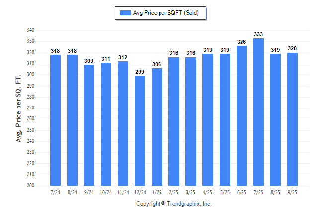 September 2025 Average Sold Price per Square Footage was Neutral**