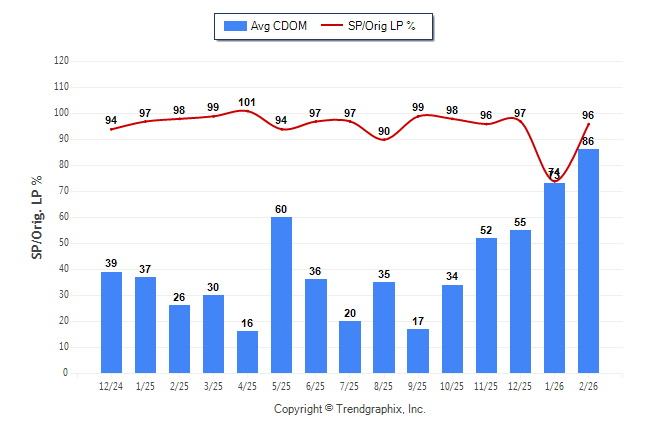 February 2026 Average Continuous Days on Market trend was Rising and Sold/Original List Price Ratio Remains Steady**