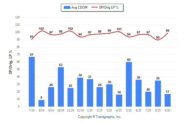 September 2025 Average Continuous Days on Market trend was Falling and Sold/Original List Price Ratio Remains Steady**