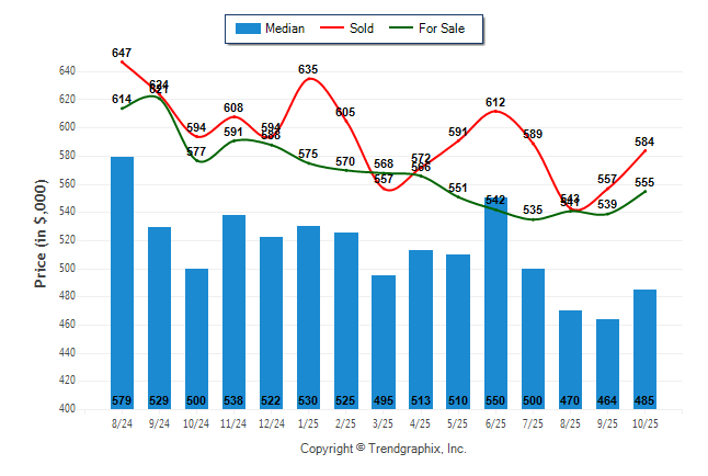 October 2025 Median Price was Neutral, Avg. For Sale Price was Appreciating, and Avg. Sold Price was Neutral**