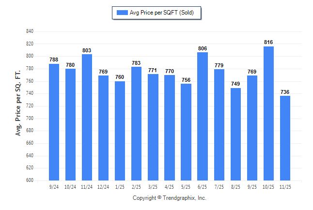 November 2025 Average Sold Price per Square Footage was Depreciating**