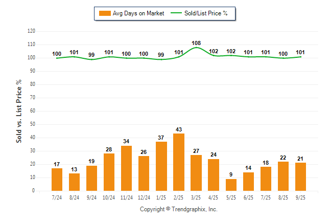 September 2025 Average Days on Market trend Remains Steady and Sold/List Price Ratio Remains Steady**