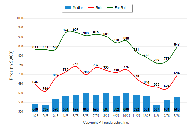 March 2026 Median Price was Neutral, Avg. For Sale Price was Neutral, and Avg. Sold Price was Neutral**