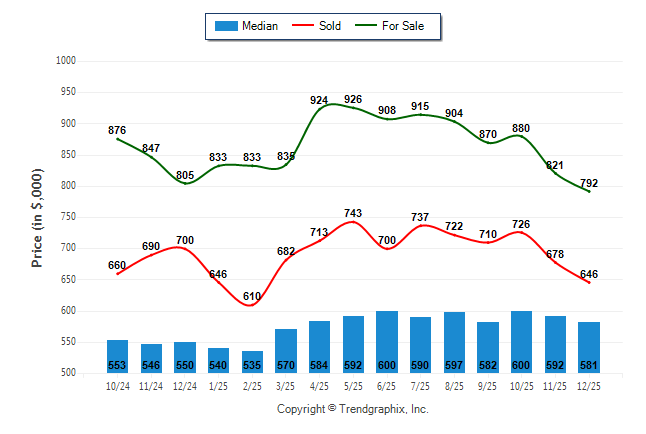 December 2025 Median Price was Neutral, Avg. For Sale Price was Depreciating, and Avg. Sold Price was Depreciating**