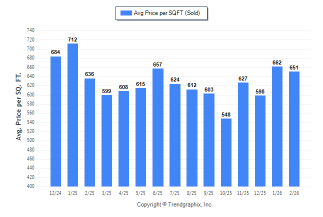 February 2026 Average Sold Price per Square Footage was Neutral**