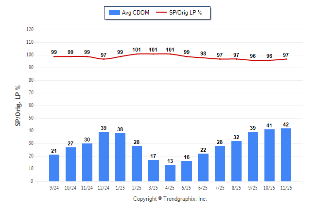 November 2025 Average Continuous Days on Market trend was Rising and Sold/Original List Price Ratio Remains Steady**