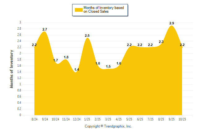 Curnt vs. Same Month 1 Yr Ago: Months of Inventory (Closed Sales)