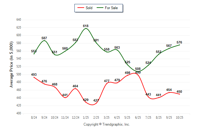 October 2025 Average For Sale Price was Appreciating and Average Sold Price was Neutral**