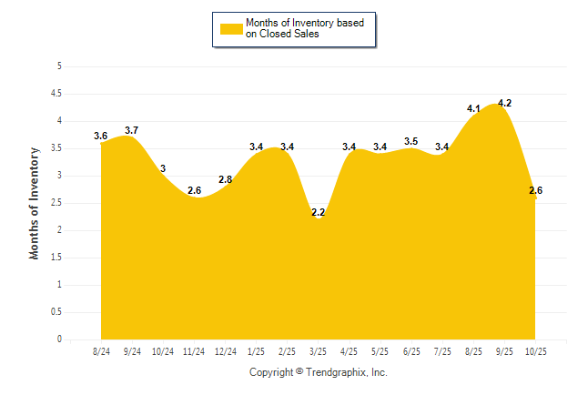 Curnt vs. Same Month 1 Yr Ago: Months of Inventory (Closed Sales)