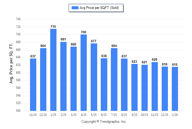 January 2026 Average Sold Price per Square Footage was Depreciating**