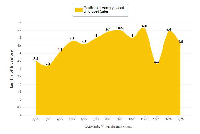 Curnt vs. Same Month 1 Yr Ago: Months of Inventory (Closed Sales)