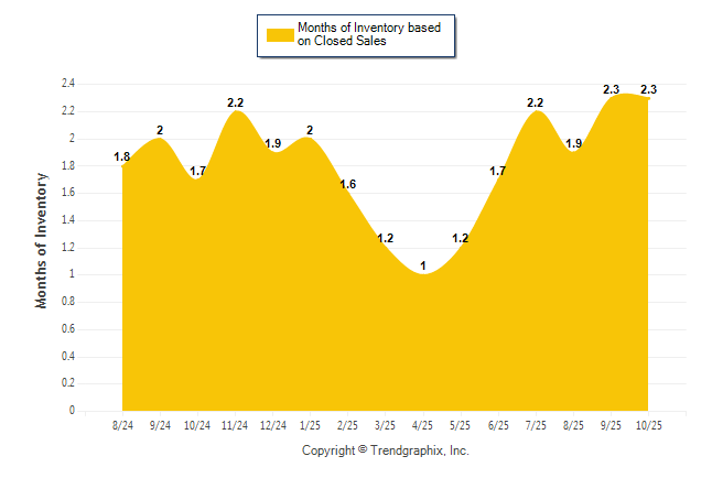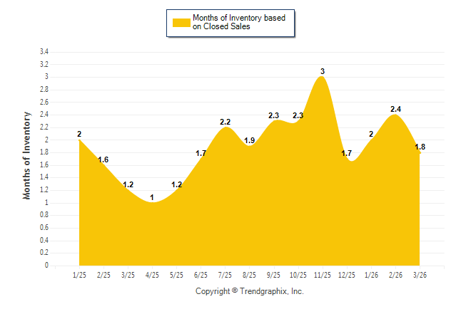 Curnt vs. Same Month 1 Yr Ago: Months of Inventory (Closed Sales)