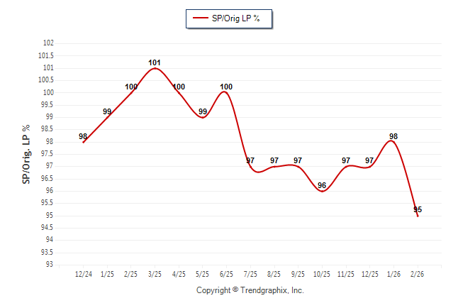 February 2026 Sold/Original List Price Ratio Remains Steady**