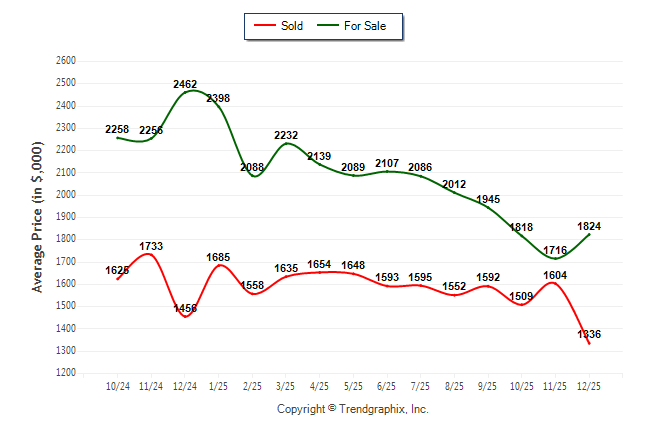 December 2025 Average For Sale Price was Neutral and Average Sold Price was Depreciating**