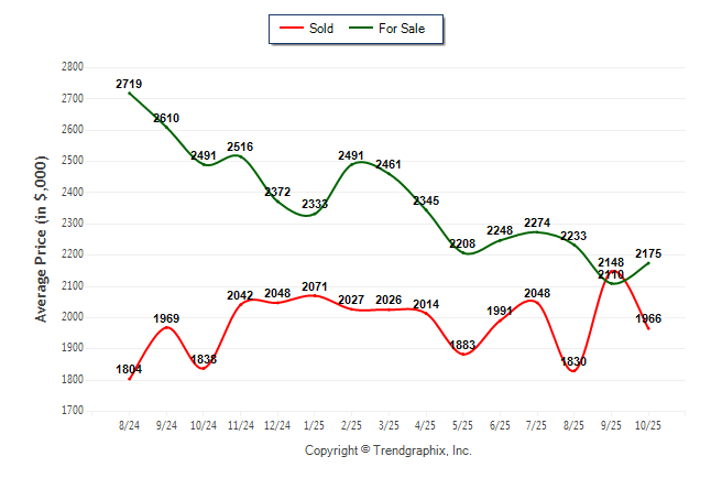 October 2025 Average For Sale Price was Neutral and Average Sold Price was Neutral**