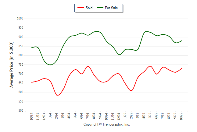 October 2025 Average For Sale Price was Neutral and Average Sold Price was Neutral**