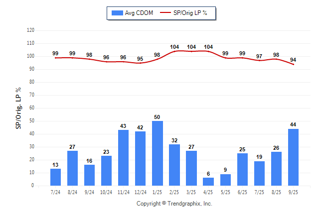 September 2025 Average Continuous Days on Market trend was Rising and Sold/Original List Price Ratio was Falling**