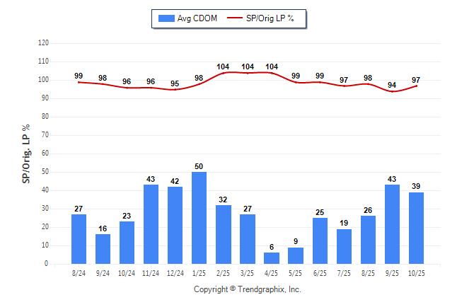 October 2025 Average Continuous Days on Market trend Remains Steady and Sold/Original List Price Ratio Remains Steady**